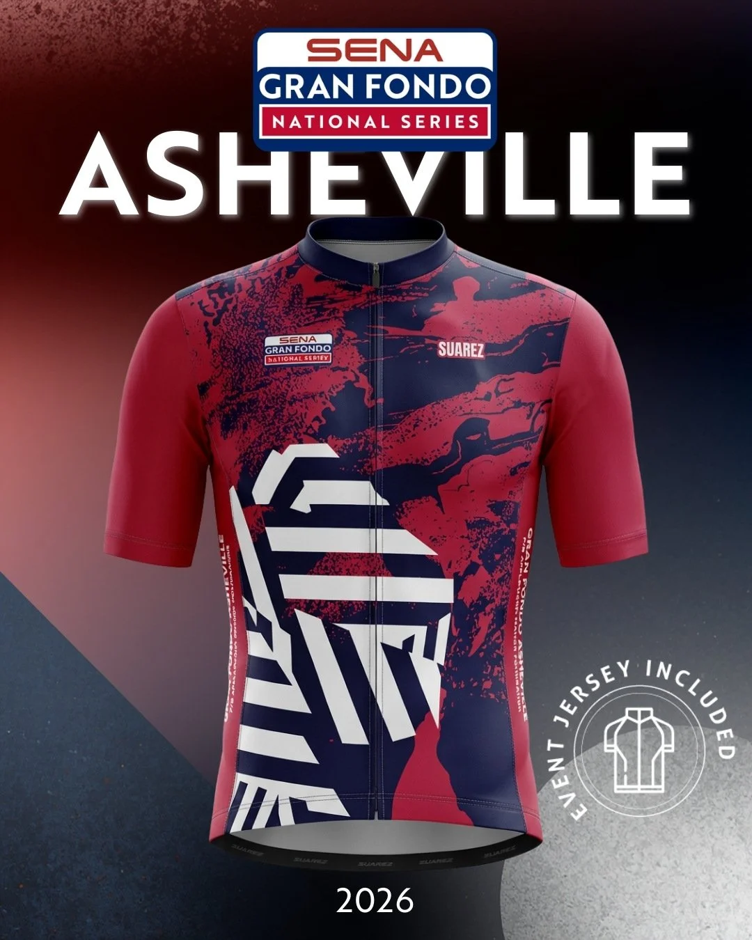 All athletes who sign up for Gran Fondo Asheville at least 30 days before the event, or by June 19, will receive an event-specific jersey from SUAREZ! These jerseys are produced on-demand, which is why we need accurate counts ahead of time. We will have a limited supply of jerseys for size exchanges and for purchase day of the event. Don't forget to complete your kit with matching bib shorts, available during signup and on-site.