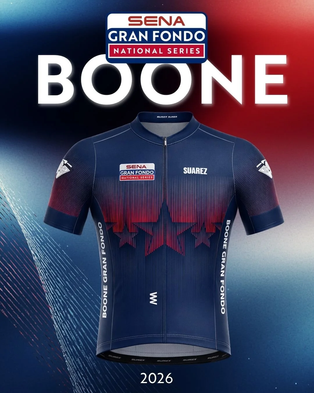 All athletes who sign up for Boone Gran Fondo at least 30 days before the event, or by July 3, will receive an event-specific jersey from SUAREZ! These jerseys are produced on-demand, which is why we need accurate counts ahead of time. We will have a limited supply of jerseys for size exchanges and for purchase day of the event. Don't forget to complete your kit with matching bib shorts, available during signup and on-site.